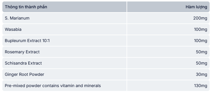 - Với tinh chất S. Marianum và Wasabia thiên nhiên, kiểm soát hoạt động tế bào Kupffer, cải thiện các chức năng về gan.